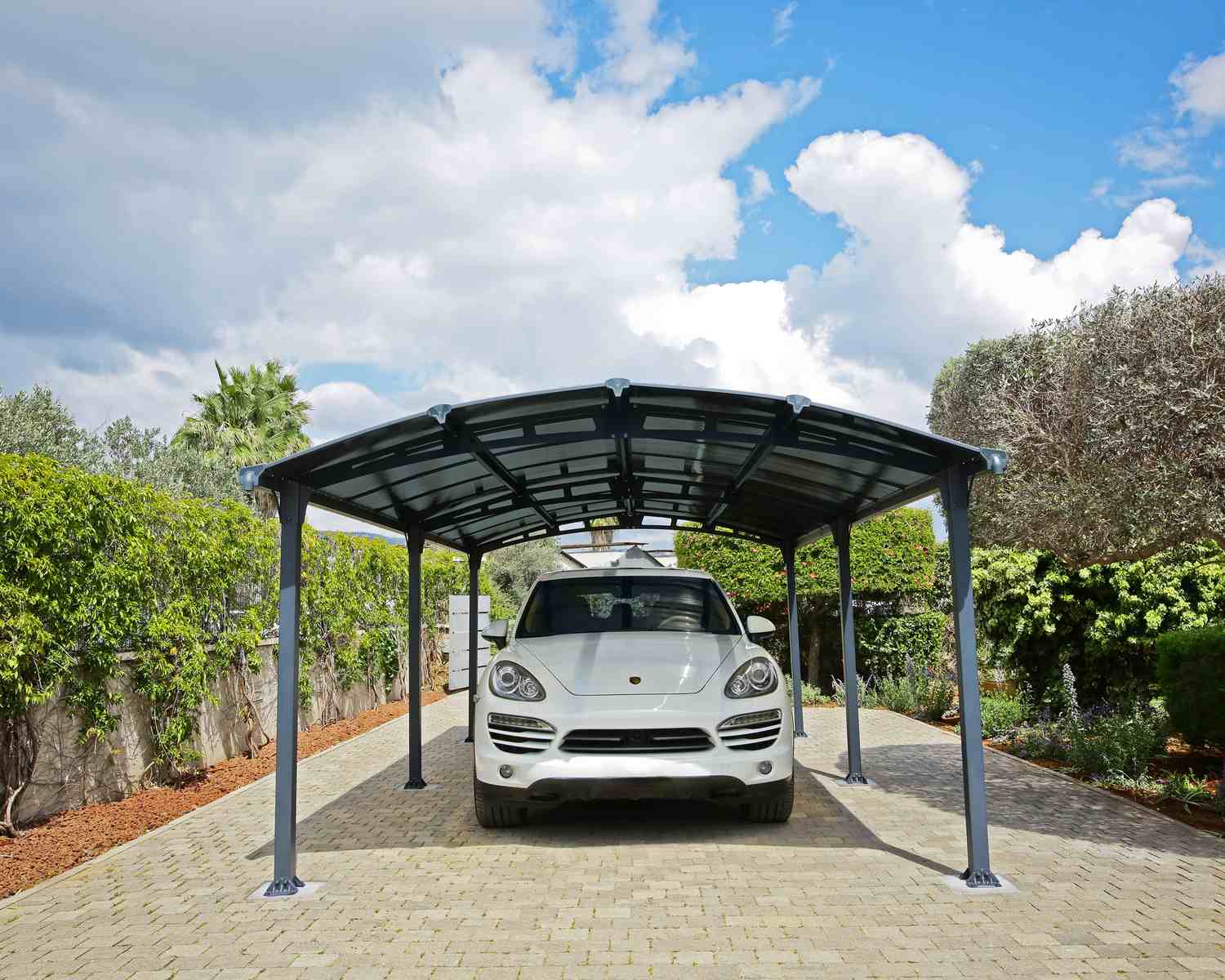Nous connaissons tous ces matins où le temps est mauvais et où vous devez déneiger votre voiture ou monter dans un véhicule brûlant. Le Carport Arcadia vous permet d'économiser du temps et des efforts et vous protège, vous et votre voiture, des intempéries. Le Carport à toit incurvé protège également votre voiture de la décoloration due au soleil, des rayures inutiles et des dommages. Avec plus de 10 pieds de largeur d'entrée et 7 pieds de hauteur libre, le carport simple Arcadia vous donne beaucoup d'espace pour garer et circuler autour de votre véhicule. Ce carport simple et robuste présente aussi une capacité de charge de neige allant jusqu'à 15,4 lbs./pied². Il compte aussi avec une gouttière pour évacuer l'eau de pluie, des panneaux de toit alvéolaire en polycarbonate et un cadre en aluminium inoxydable. Grâce à toutes ces caractéristiques, la structure est polyvalente et peut également être utilisée comme espace de détente couvert à l'extérieur. Prolongez la durée de vie de votre véhicule et passez moins de temps à vous soucier de votre voiture avec le Carport en kit Arcadia.