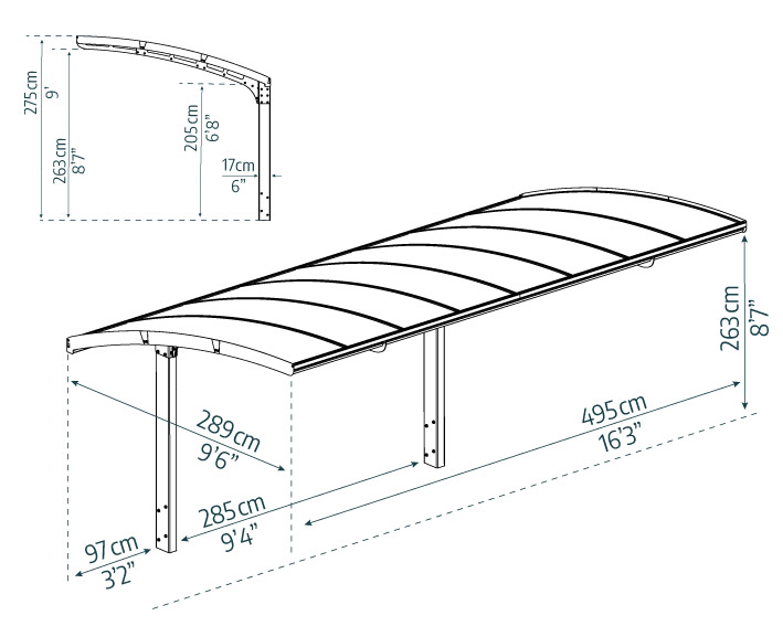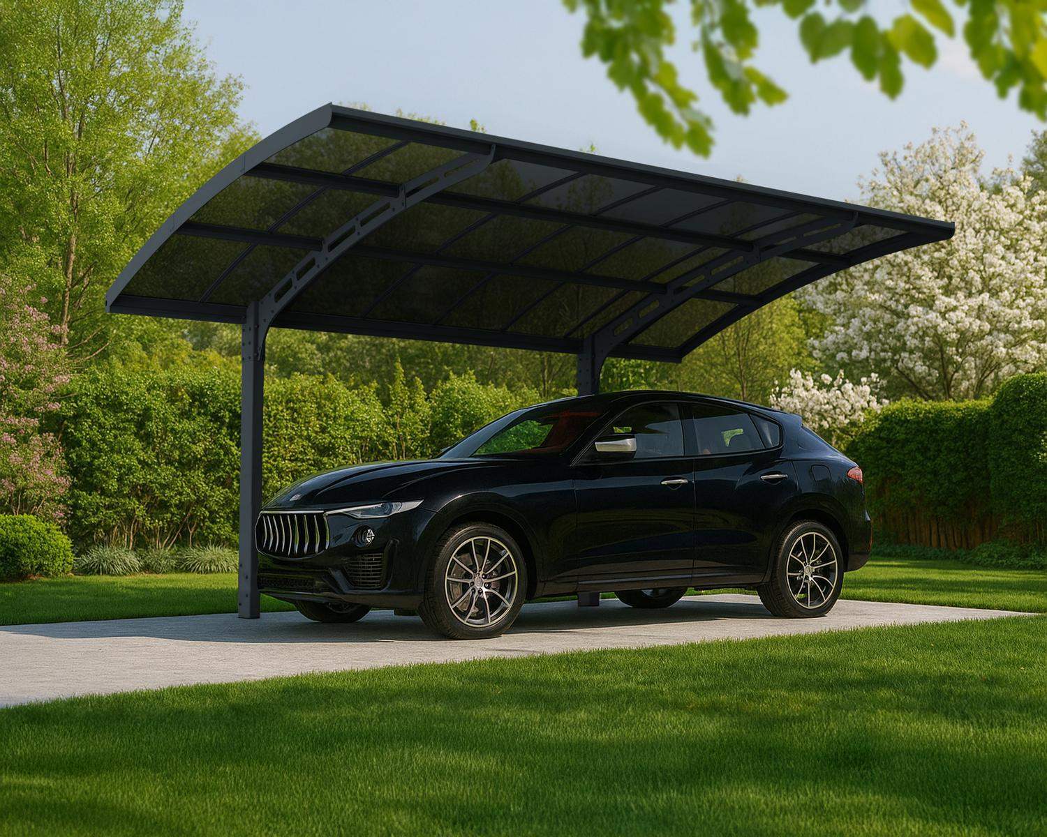 Le Carport autoportant Arizona Wave a été conçu pour répondre à vos besoins de protection extérieure. Sa forme à deux pieds le rend facile d'accès et fonctionne tout aussi bien qu'une pergola, offrant ombre et protection, que vous l'utilisiez pour votre voiture ou comme salon extérieur couvert. Le design unique de ce carport en forme d'arche embellira à coup sûr votre extérieur. La structure et la toiture ont été conçus pour résister à des conditions météorologiques difficiles. Les panneaux en polycarbonate bloquent les rayons UV nocifs et le cadre en aluminium est très résistant. Le Carport Arizona Wave offre à votre famille une protection élégante, robuste, résistante aux intempéries et à la rouille, et sans entretien pendant de nombreuses années.
