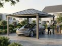 Garez-vous dans votre allée en toute sécurité et avec modernité, avec le carport Colorado extra-large. Ce carport en aluminium vous offre une grande place de parking protégée, afin de garder votre véhicule à l’abri des éléments extérieurs, et est supporté par 4 poteaux : pour un passage large et confortable de 2 voitures. Les voitures sont onéreuses et il est important de les préserver et éviter les dommages sur la carrosserie, causés par la pluie, la neige ou les rayons UV. La toiture en polycarbonate gris mat résiste aux conditions météorologiques tout au long de l’année et offre un ombrage parfait pour garder votre voiture au frais, préserver la peinture, et protéger votre carrosserie. Le contraste visuel entre la structure robuste en aluminium et la toiture moderne rend votre entrée contemporaine et stylisée au premier regard. Avec ses profilés pré-percés et ses plaques pré-découpées, ce carport DIY est prêt à être assemblé, et facile à monter. Il ajoute une touche de modernité à votre maison et protégera votre véhicule pour de nombreuses années.