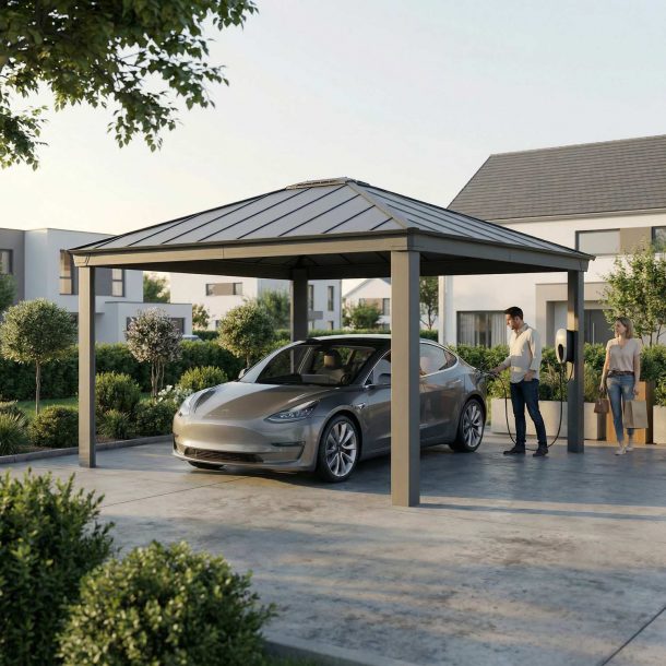 - Prêt à assembler : Le carport est livré en kit, prêt à monter : profilés pré-percés et plaques pré-découpées, avec un système facile de glissement des plaques dans la structure. Nous vous recommandons de bien lire toutes les instructions avant de commencer le montage.