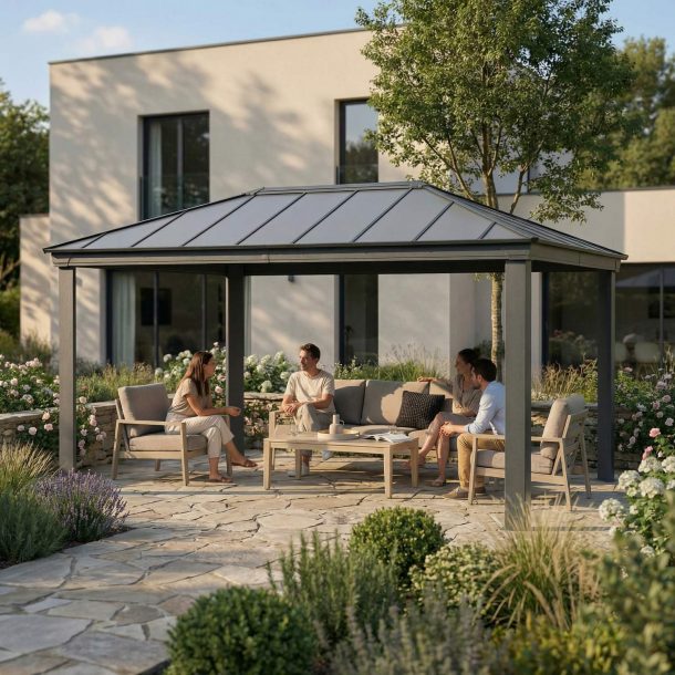 Tonnelle de jardin Dallas 3.6X6 Structure aluminium grise & toiture polycarbonate