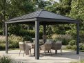 - Système de toiture unique : La tonnelle à toit rigide est doté d’un système de toiture aux performances uniques. Les panneaux de toit gris opaques sont dotés d’un vitrage offrant une ombre totale et de la technologie Heat Block, qui permet de réduire la température de 5°C. Il ne comporte pas de vis, ce qui évite les fuites, et est équipé d’un système de ventilation intégrée qui permet à l’air de circuler.