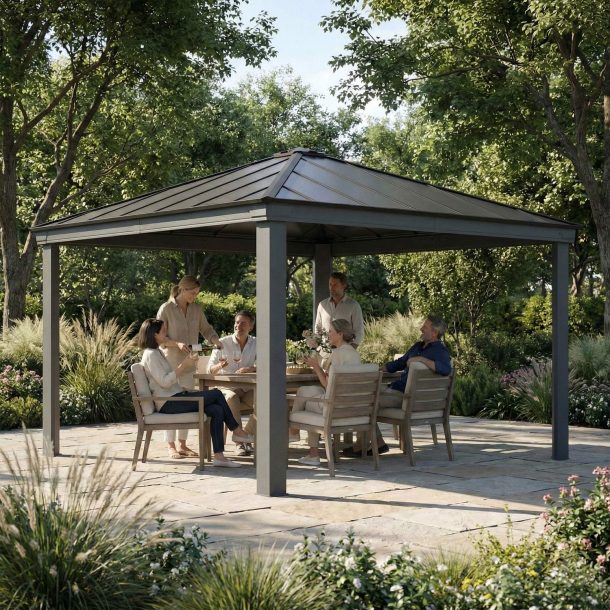 - Structure durable, aspect moderne: La structure en aluminium est durable, résistante à la rouille et conçue pour résister aux conditions météorologiques difficiles. Le design moderne de la tonnelle Dallas s’intègrera parfaitement à votre extérieur.