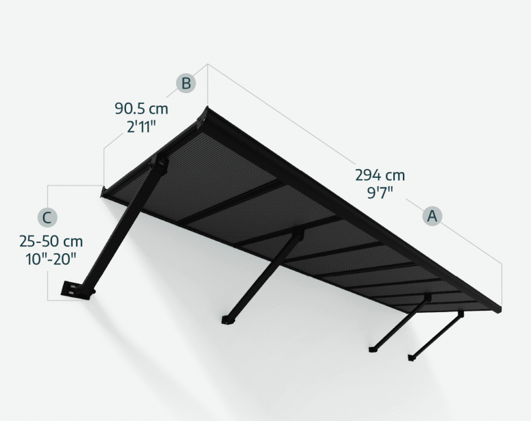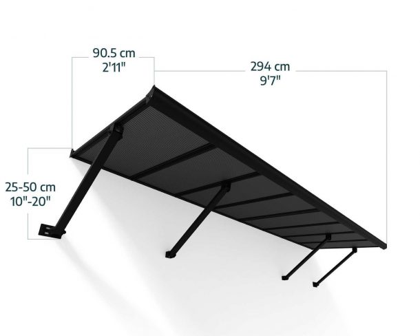 Marquise de porte Augustine 90.5 cm x 294 cm Structure Noire, Panneaux Gris Opaque