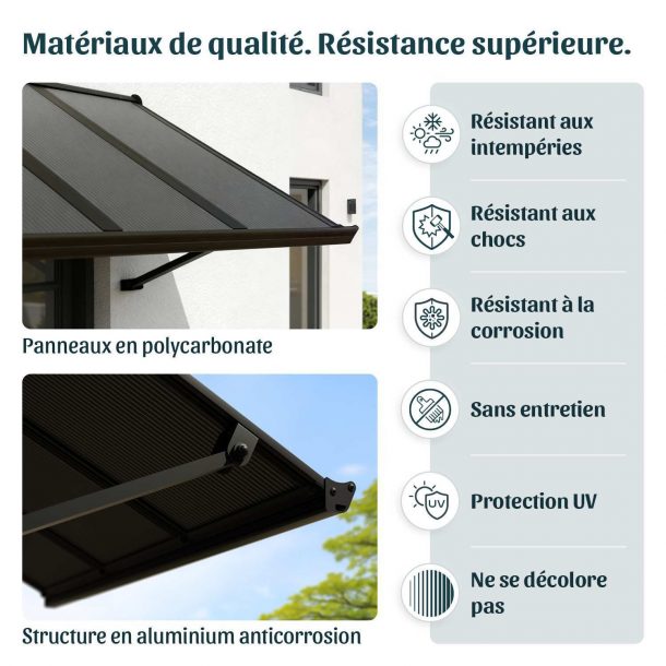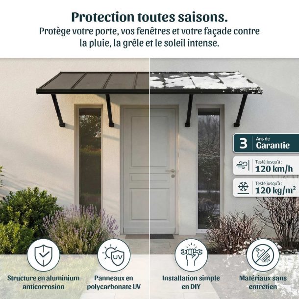 professionnel.) - Extension modulable : Installez plusieurs auvents côte à côte pour couvrir de larges portes, fenêtres ou garages.