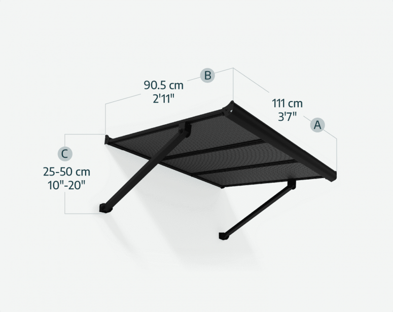 Marquise de porte Augustine 90.5 cm x 111 cm Structure Noire, Panneaux Gris Opaque