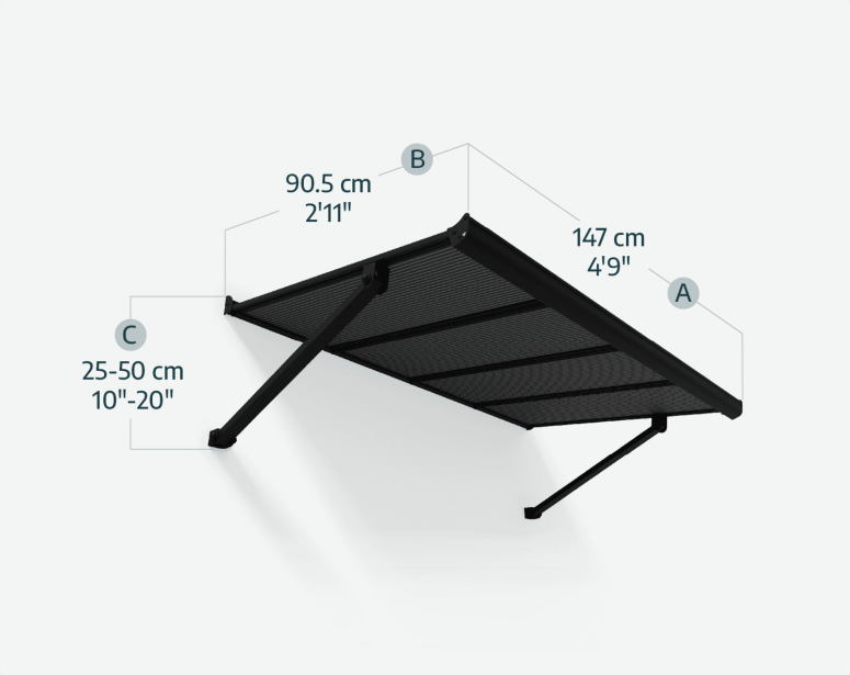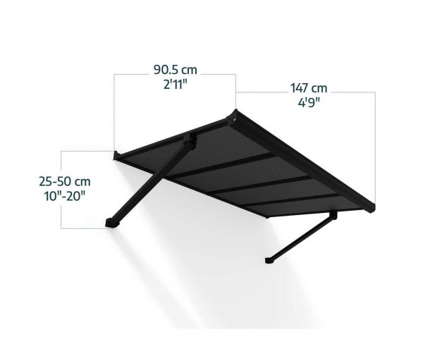 Augustine 3 ft. x 5 ft. Door Awning Kit - Black Structure & Opaque Grey Panels