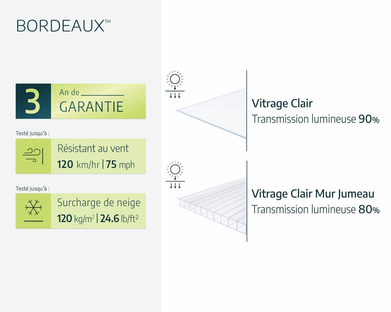 - Les informations techniques, y compris les dimensions, l’épaisseur des panneaux et les résistances au vent et à la neige, peuvent être consultées dans la galerie de photos ci-dessus.