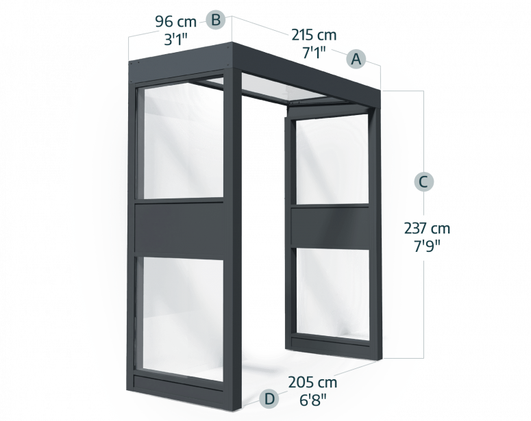 Ajoutez un style contemporain et une protection avec l'auvent de porte et le mur latéral Sophia. Améliorez votre entrée avec la paroi latérale Sophia, le complément parfait de l'auvent de porte Canopia Sophia. Conçus exclusivement pour être utilisés avec les stores Sophia, ces panneaux latéraux intégrés offrent une protection accrue, un style moderne et un aspect accueillant pour l'entrée avant ou arrière de votre maison. Protégez votre porte du vent, de la pluie et de la neige. La paroi latérale Sophia crée une couche supplémentaire de couverture, aidant à garder votre entrée sèche et confortable tout au long de l'année. Vous avez le choix entre une gamme complète de tailles et de configurations, une paroi latérale à gauche ou à droite, et deux côtés pour une enceinte optimale. Avec son cadre élégant de couleur anthracite et son vitrage cristallin, le Sophia Sidewall s'intègre parfaitement aux lignes contemporaines de l'auvent Sophia, améliorant ainsi l'attrait du trottoir tout en offrant un abri fonctionnel. Fabriquée en aluminium de haute qualité revêtu de poudre et en verre acrylique transparent, la paroi latérale résiste à la rouille, au jaunissement et à l'usure quotidienne. Il est conçu pour rester beau avec un minimum d'entretien. Parfaite adaptation aux stores Sophia La paroi latérale n'est pas un produit autonome. Il n'est vendu qu'avec l'ensemble d'auvent de porte Sophia afin de garantir un ajustement parfait et sûr. Ensemble, l'auvent et le mur latéral créent une solution d'entrée complète et moderne.