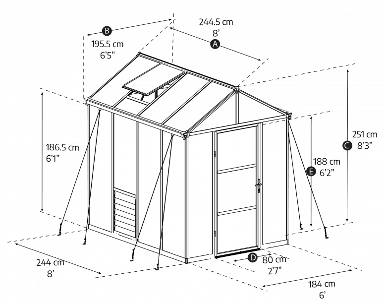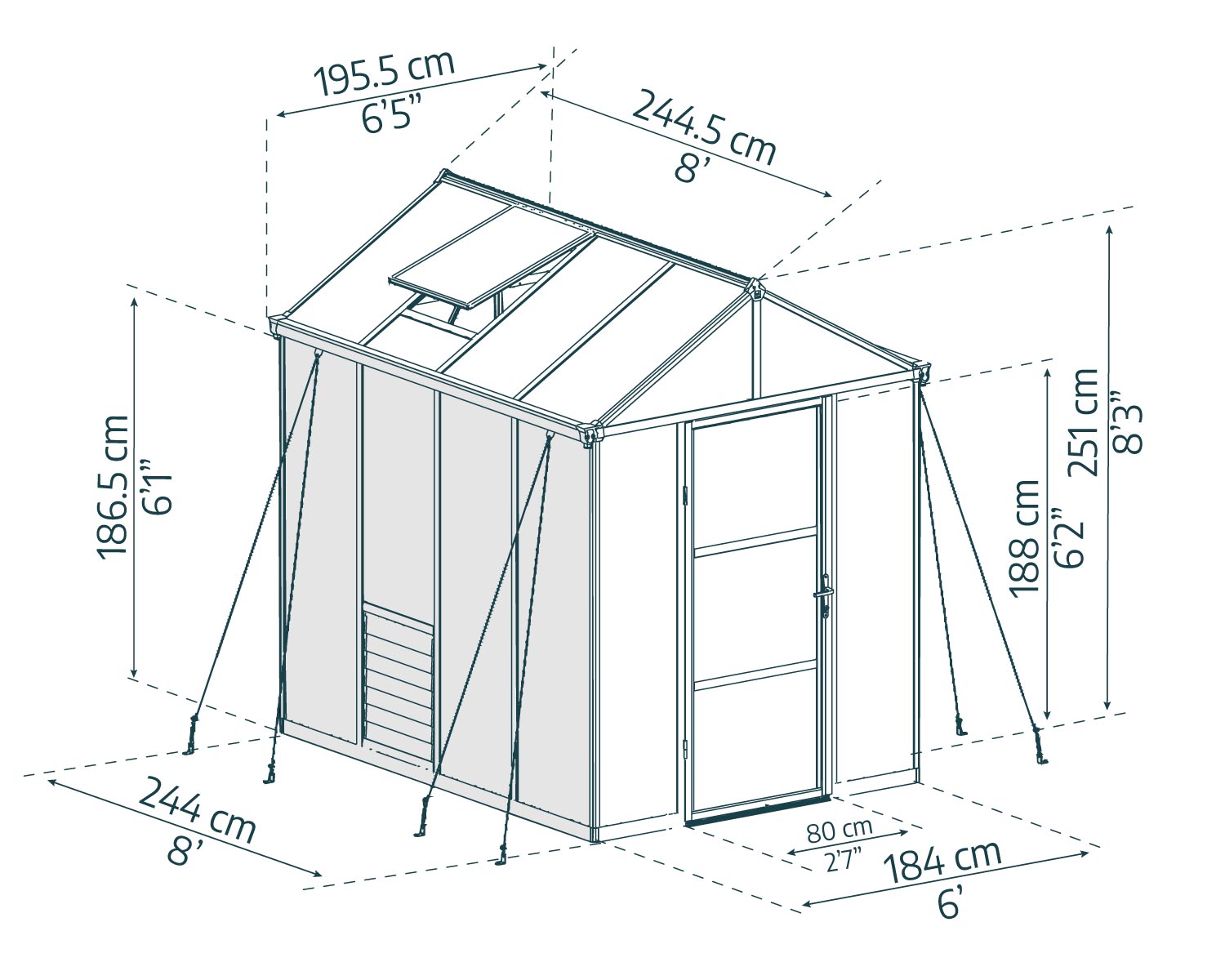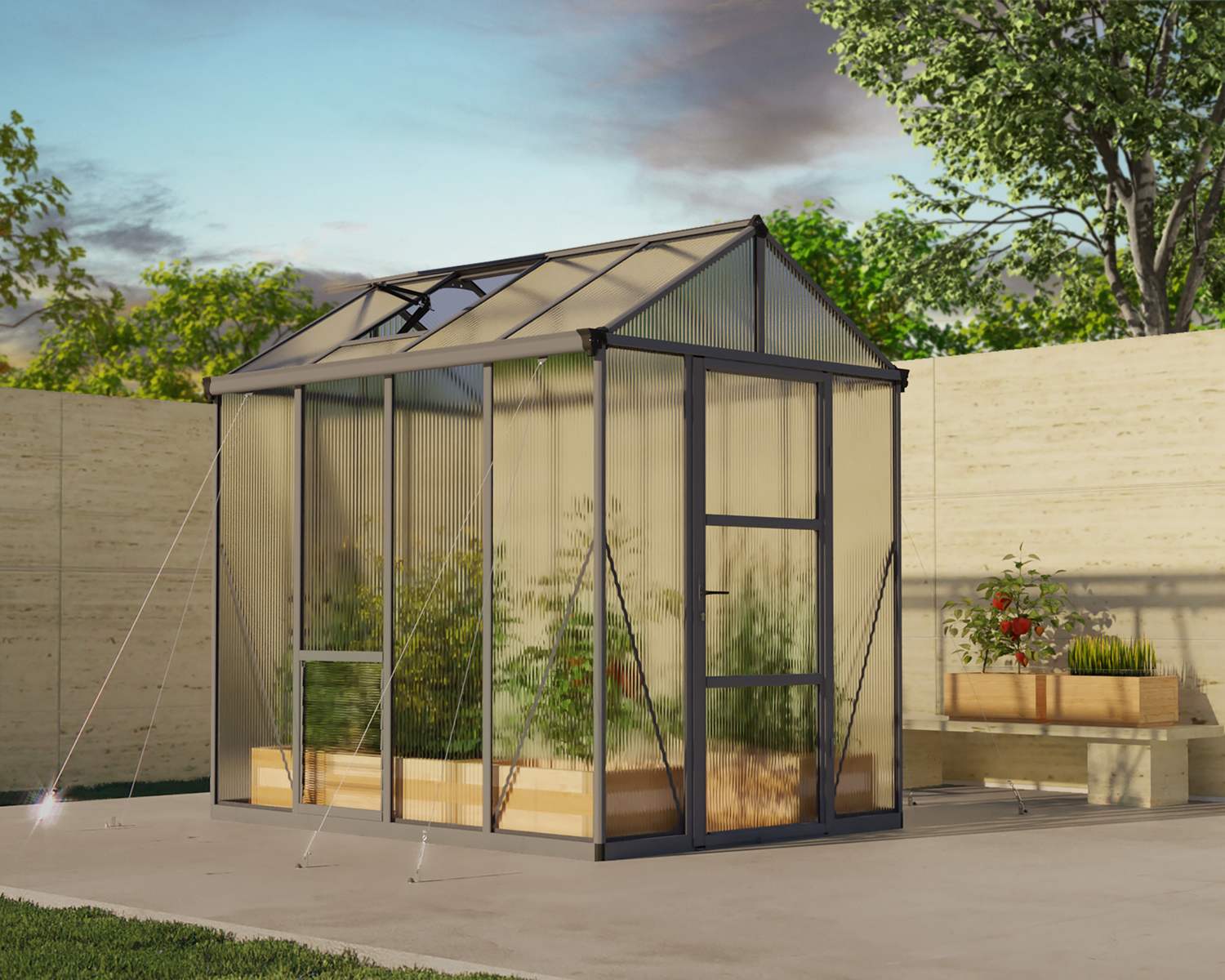 Réalisez vos rêves de jardinage dans la bien nommée serre de jardin. Dans un beau design classique, ces serres de jardin en kit est créé pour les plantes et les humains qui en prennent soin. La serre de jardin à monter soi-même de 1,8×2,4 m (6×8 pieds) dispose d’une large entrée, d’un toit haut et d’une avancée de toit élevée, ce qui vous laisse beaucoup de place pour vous déplacer, planter votre jardin et ranger vos outils. La serre de jardin Glory a un cadre en aluminium peint par poudrage en gris et comprend un kit de base en acier galvanisé qui ajoute encore plus de hauteur, de soutien structurel et de stabilité. Combinés aux panneaux en polycarbonate alvéolaire de 10 mm d’épaisseur, vous obtenez une serre de jardin aussi résistante et fonctionnelle qu’esthétique. Cette magnifique serre de jardin de qualité supérieure est conçue et construite pour un jardinage sérieux et durable.