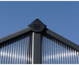 - Parois en polycarbonate résistantes à vie. Elles ne se brisent pas, ne jaunissent pas et ne se ternissent pas avec le temps