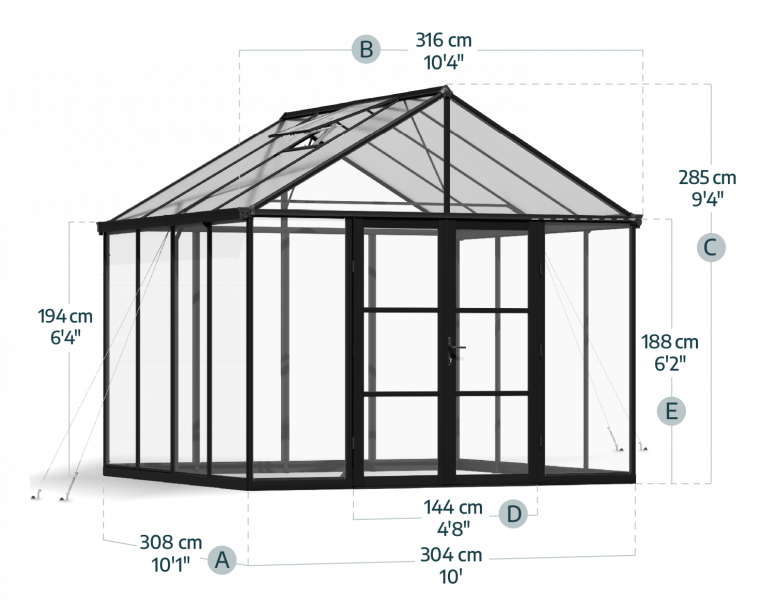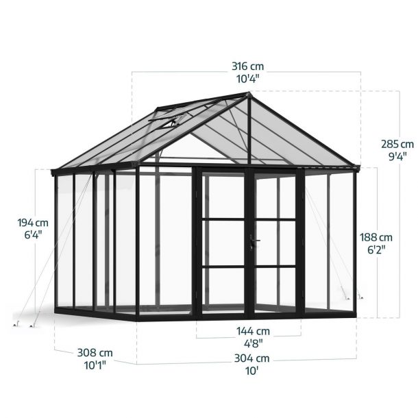 Aria 10 ft. x 10 ft. Serre de Jardin - structure noire panneaux transparents