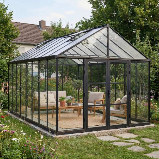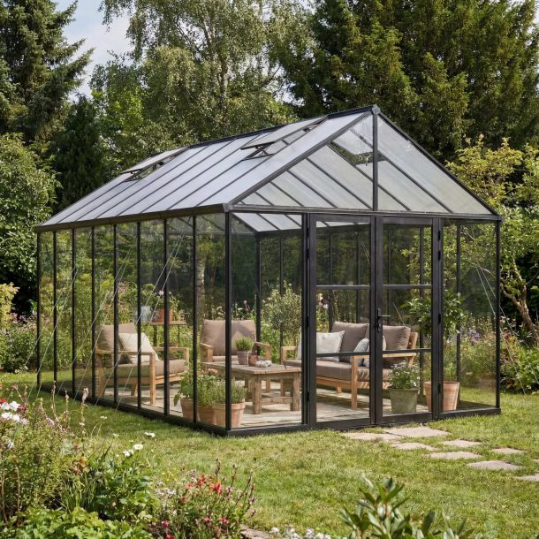Avec ses lignes épurées et ses panneaux en polycarbonate cristallin, la serre Aria laisse entrer la lumière naturelle, créant ainsi un environnement chaleureux et accueillant pour vous et vos plantes. Spacieuse, vous pourrez laisser libre cours à votre imagination. Ne prenant que l’espace nécessaire pour s’adapter à tous les jardins, elle est aussi polyvalente qu'élégante Alors que vous l’utilisiez comme serre de jardin ou simplement comme espace détente, la serre Aria deviendra un refuge idéal en toute saison.