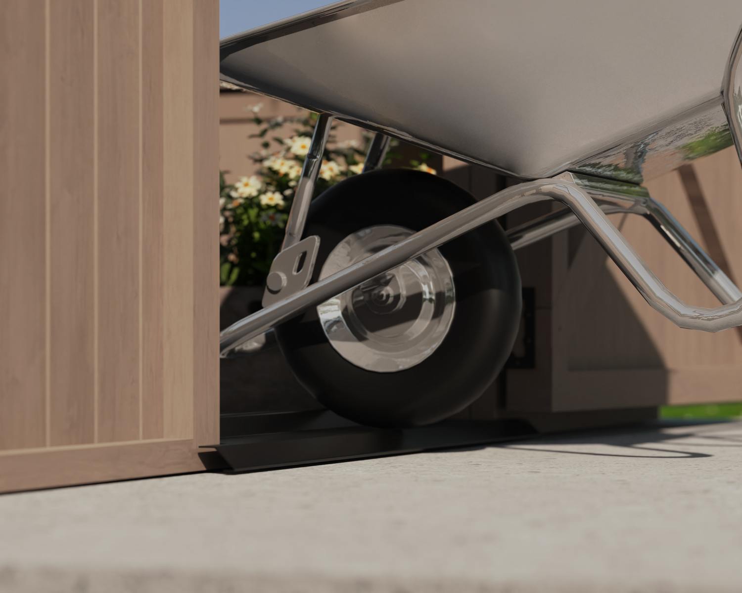 Une large porte d'entrée verrouillable avec une rampe à bas seuil facilite le déplacement des plantes, des outils ou de vous-même.