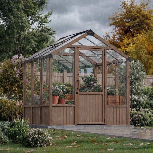 - Cadre en cèdre naturellement durable : Le bois de cèdre est naturellement résistant à la pourriture, aux parasites et aux intempéries, ce qui vous permet d’avoir une serre esthétique qui durera des années.