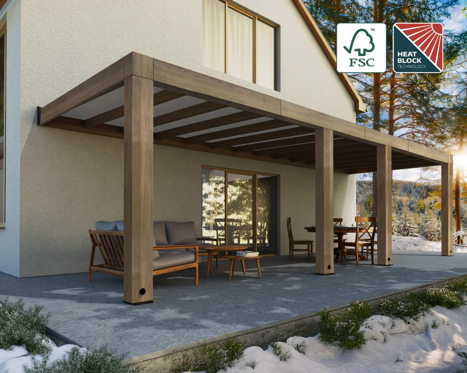 Pergola Helsinki en bois de cèdre 3 x 8.6 - Panneaux Solar Control