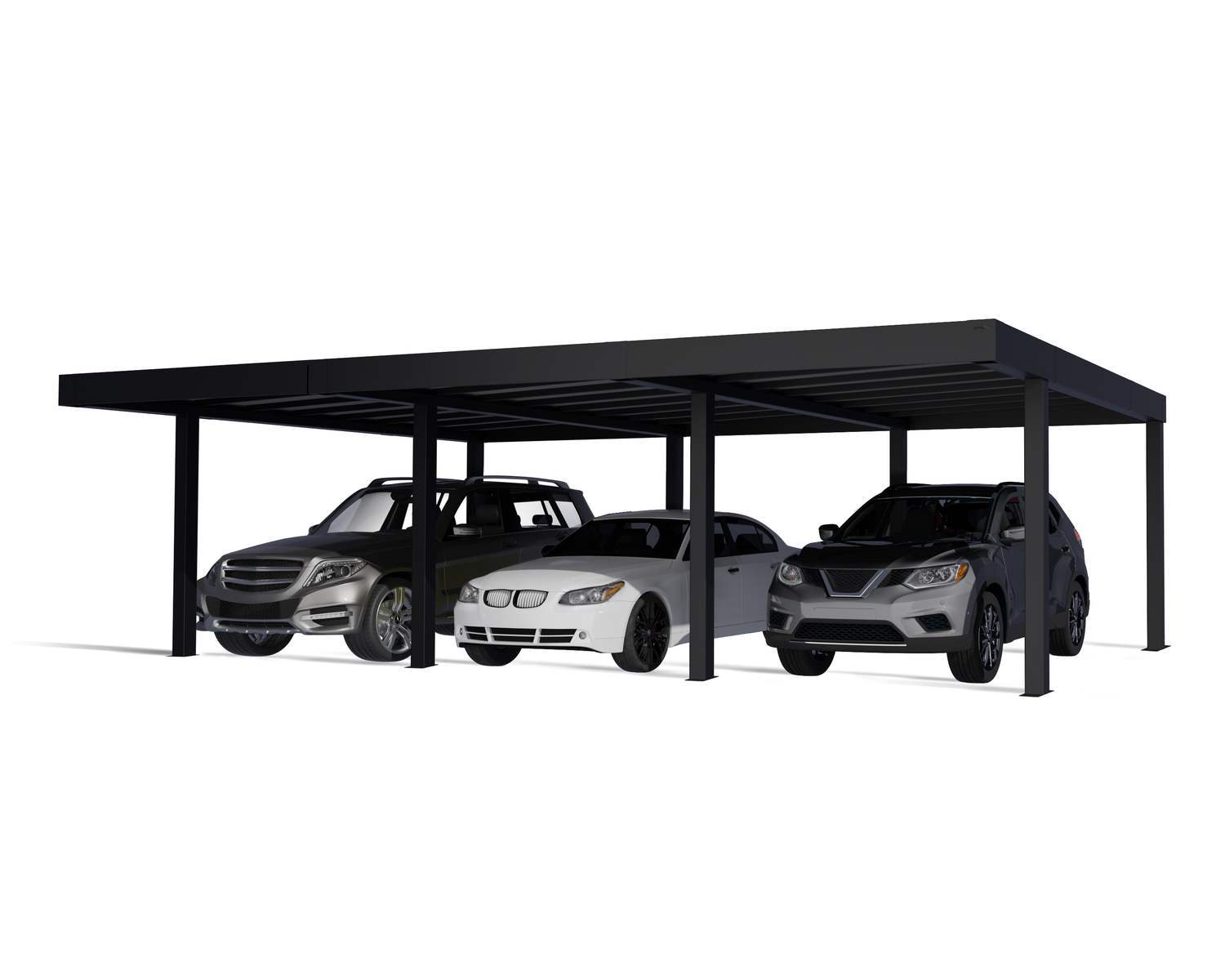 Oslo 6 x 9 m Carport Kit - Structure noire & Panneaux gris opaques à double paro