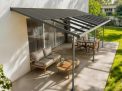 Les panneaux de toit sont installés sans vis, ce qui évite les fuites.Le toit coulissant en polycarbonate peut être ouvert jusqu’à 50 %, vous permettant de réguler la lumière et l’air pour une ombre agréable, une bonne ventilation ou une protection complète contre la pluie. Le toit s’actionne facilement et rapidement à l’aide d’une tige.
