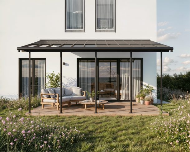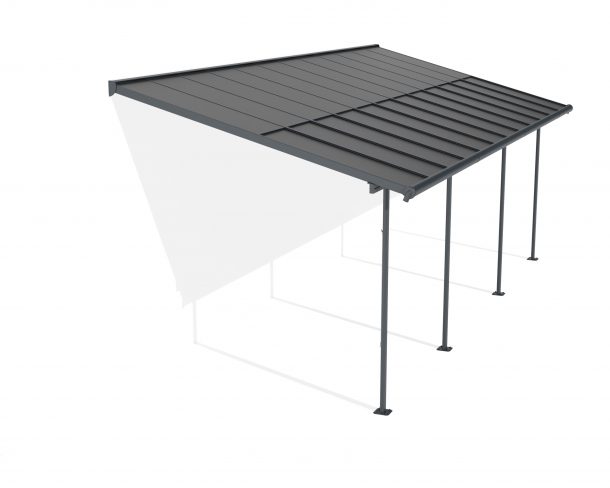 • Panneaux résistants : Les panneaux de toit gris opaques de 6 mm sont dotés de la technologie « Heat Block », offrant une protection solaire totale, réduisant la chaleur et préservant votre espace extérieur. Les panneaux en polycarbonate Canopia sont 100 % protégés contre les UV – ils ne jaunissent pas et ne deviennent pas cassants avec le temps.