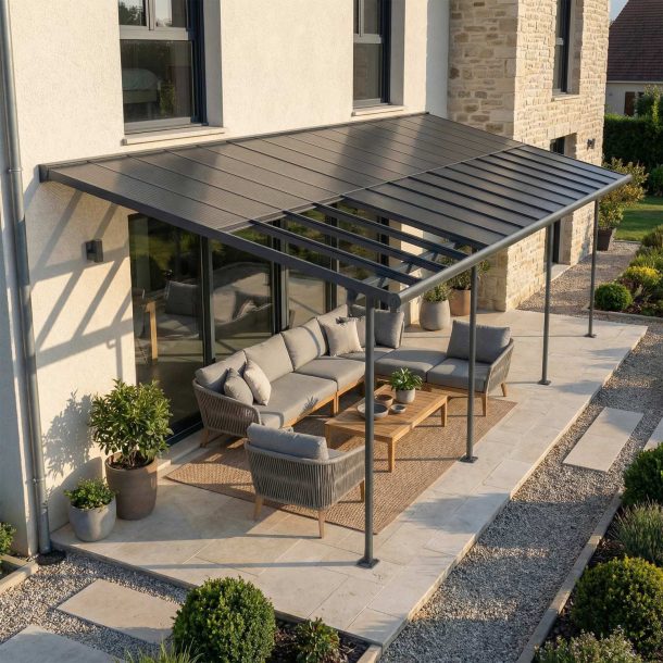 Flexibilité exceptionnelle : profitez du soleil ou de l’ombre selon vos envies. Les lignes épurées et l’allure élégante de cet abri à panneaux coulissants ajoutent une véritable valeur esthétique à votre maison.