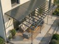 Le toit coulissant en polycarbonate peut être ouvert jusqu’à 50 %, vous permettant de réguler la lumière et l’air pour une ombre agréable, une bonne ventilation ou une protection complète contre la pluie. Le toit s’actionne facilement et rapidement à l’aide d’une tige.