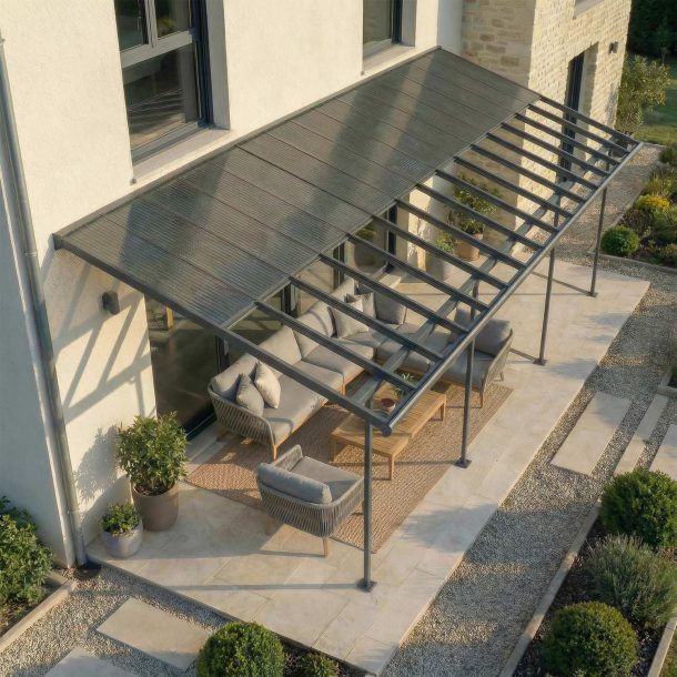 • Panneaux résistants : Les panneaux de toit gris opaques de 6 mm sont dotés de la technologie « Heat Block », offrant une protection solaire totale, réduisant la chaleur et préservant votre espace extérieur. Les panneaux en polycarbonate Canopia sont 100 % protégés contre les UV – ils ne jaunissent pas et ne deviennent pas cassants avec le temps.
