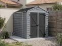 L’abri de jardin Skylight est composé d’un cadre en aluminium renforcé et de panneaux en polycarbonate flexibles, spécialement conçus pour résister à la dilatation et au rétrécissement dus aux changements climatiques. Les panneaux ne se tordent pas, ne se brisent pas et ne se décolorent pas au fil du temps, ce qui permet de protéger vos objets pendant des années sans entretien. Les panneaux de toit Skylight, uniques en leur genre, laissent passer la lumière naturelle du soleil pendant la journée tout en offrant une vue extérieure opaque pour une intimité maximale et des ouvertures de ventilation à l’avant et à l’arrière pour un flux d’air suffisant. Conçu pour répondre à vos besoins en matière de vie extérieure, l’abri de jardin en plastique Skylight complétera votre maison, améliorera votre espace de vie extérieur et permettra d’organiser et de protéger vos affaires.