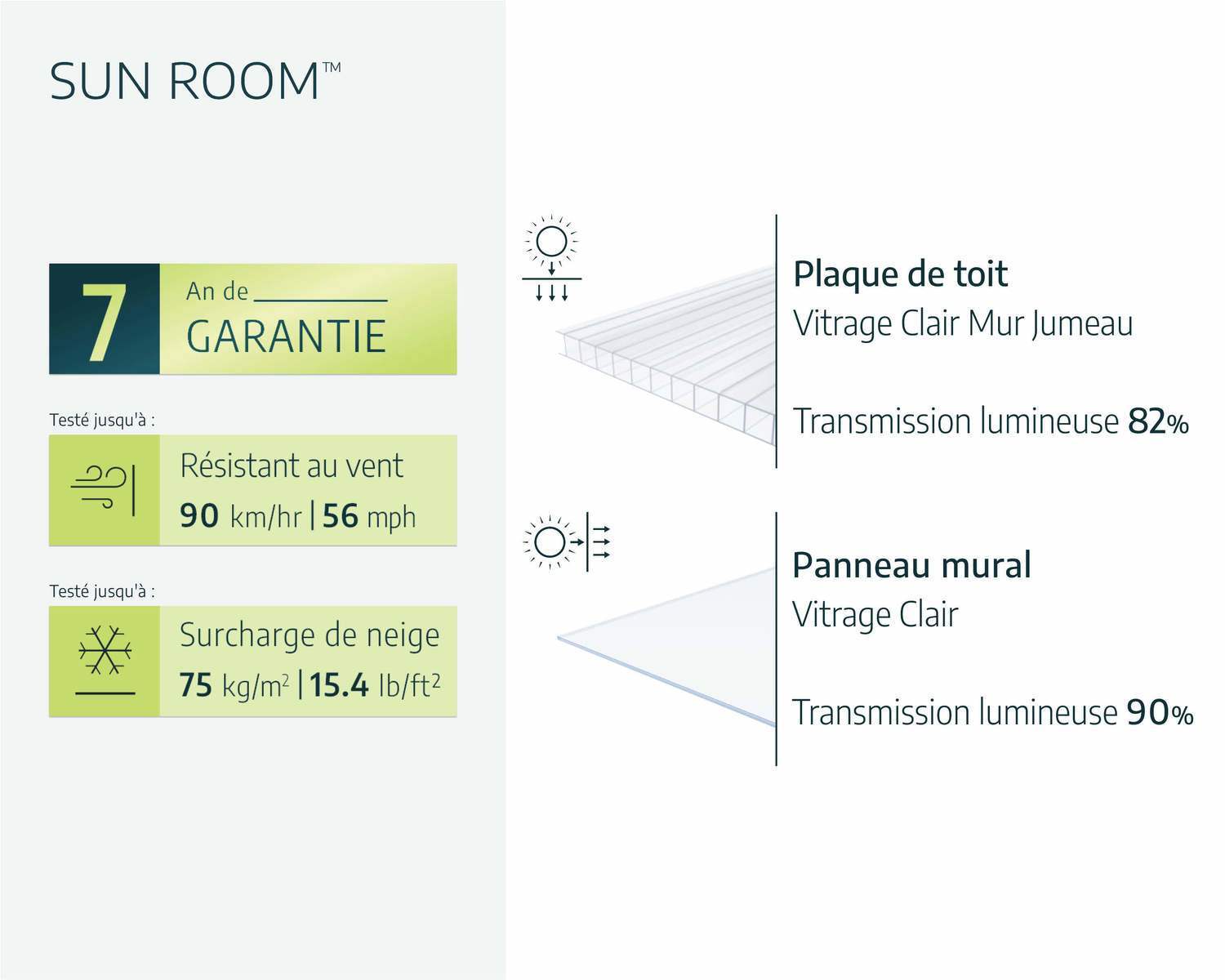 - Panneaux de toit en polycarbonate double-parois, filtrent la lumière du soleil et bloquent 100 % des rayons UV nocifs