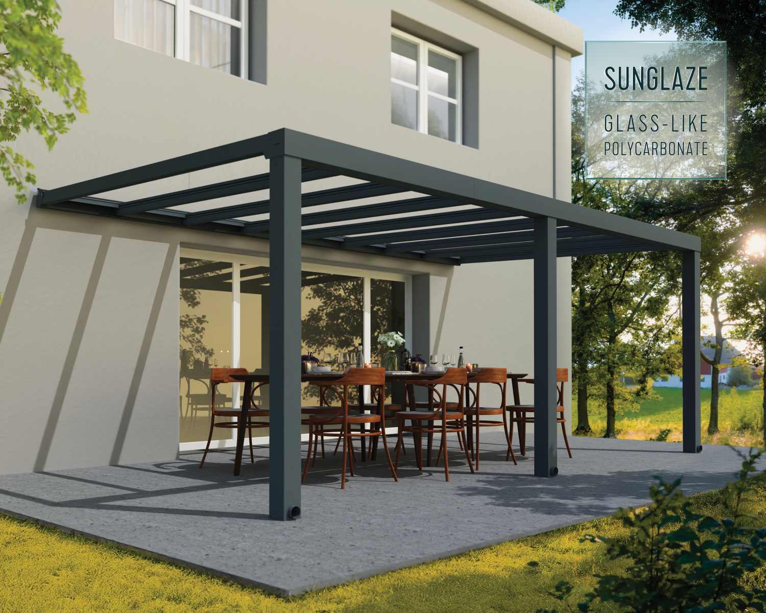 - Système de toit en polycarbonate pratiquement incassable, 100 % anti-UV, d’une épaisseur de 4 mm – protège des rayons UV nocifs, de la grêle et de la neige.