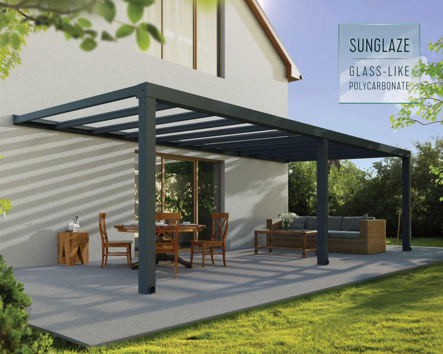 Pergola Stockholm 3.4X8 Structure en Aluminium gris et panneaux transparents