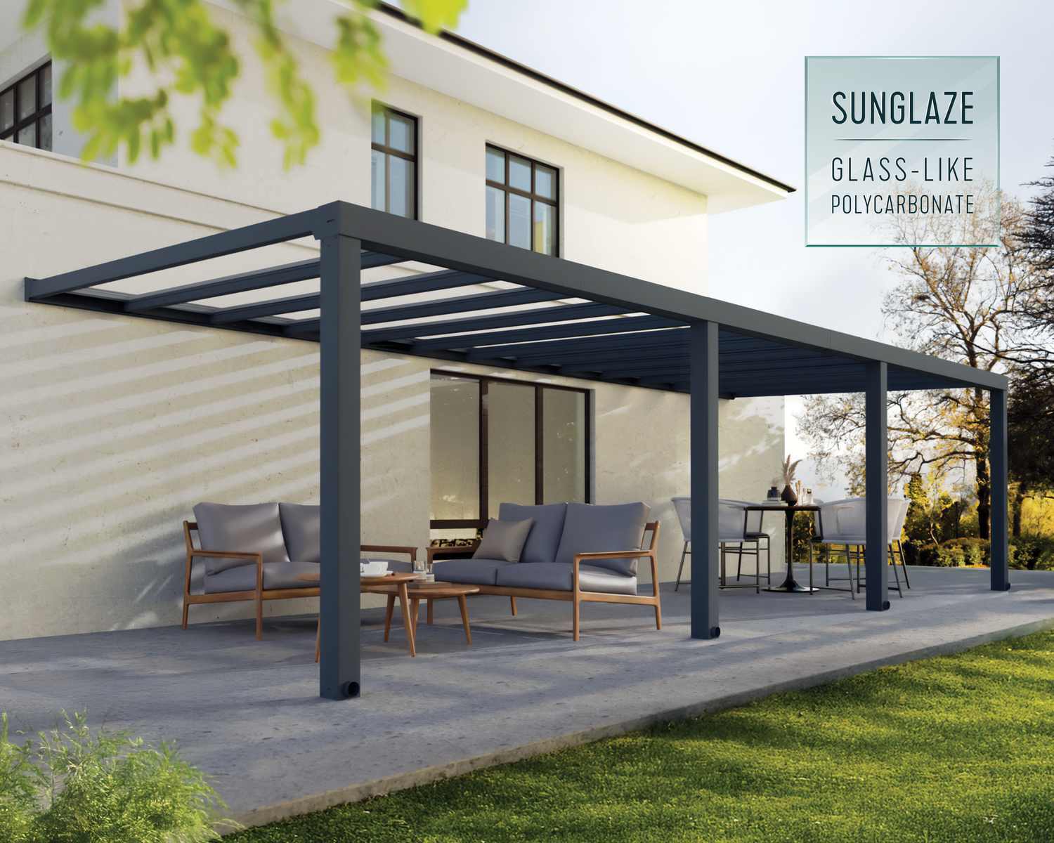 Pergola Stockholm 3.4X9.5 Structure en Aluminium gris et panneaux transparents